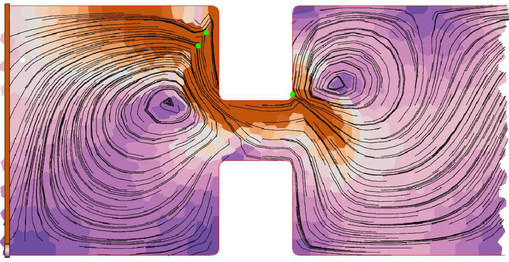 Figure 8). It visualizes related simulations that are assumed to be symmetric with respect to one of the main axes. While the same information can be gathered by examining the two simulations in different views, the two halves view may facilitate analysis, as images to be compared are closer together, and it is useful for presentation, as it saves space. This type of visualization was previously performed manually by domain experts. This option is only available for 2D simulations in