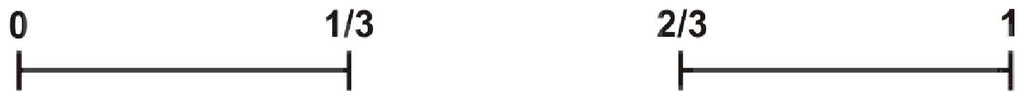 The open interval (1/3, 2/3) is now cut out, and the set results (Figure 2).