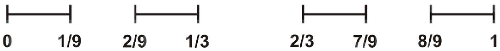 Afterwards, we remove the open intervals (1/9, 2/9) and (7/9, 8/9) from the middle of the remaining sets and obtain the set (Figure 3).