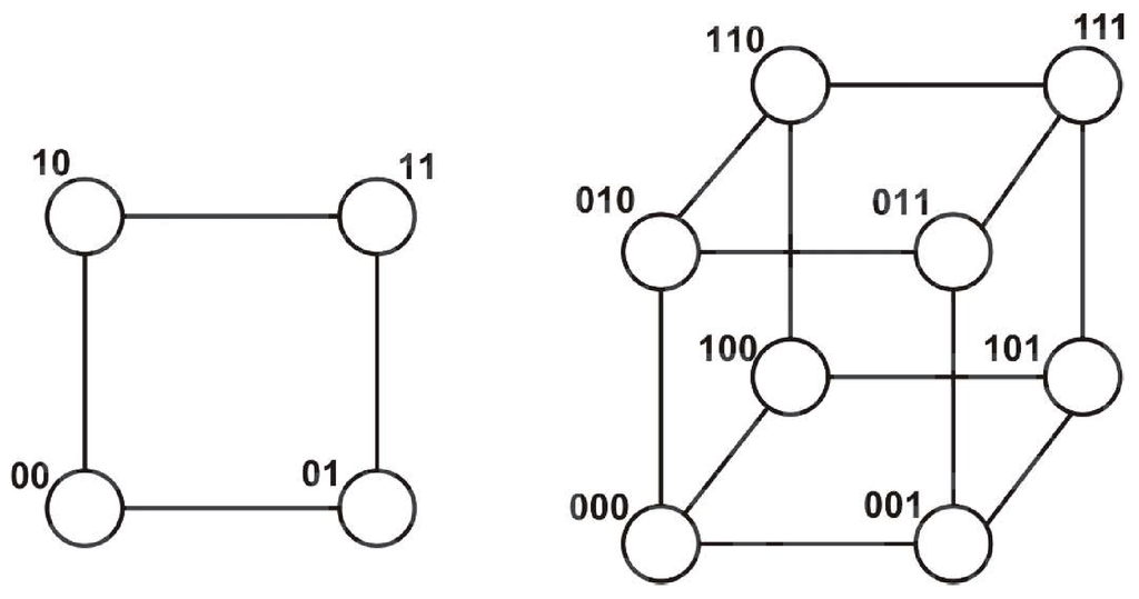 Two and three-dimensional hypercube.
