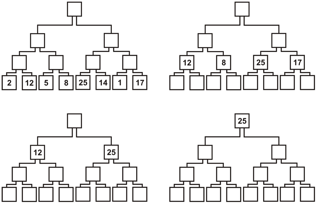 Maximum of eight integers on a full and complete binary tree.