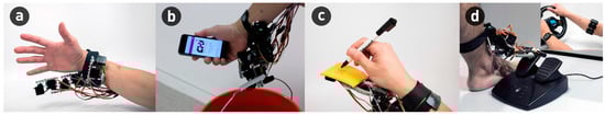 - Wu, F.Y.; Asada, H.H. “Hold-and-manipulate” with a Single Hand Being Assisted by Wearable Extra Fingers. In Proceedings of the 2015 IEEE International Conference on Robotics and Automation, ICRA ’15, Seattle, WA, USA, 26–30 May 2015; pp. 6205–6212.