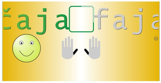 Research on emotion elicitation using simple graphical elements (such as emoticons and smilies) is far less common than research on emotion elicitation with affective agents such as facial expressions, humanoid faces, or emotional avatars [,,,,,]. Whereas several studies on emotion elicitation use different stimuli (e.g., pictures, movies, music) [,] and behavioral cues [], only a few tackle the challenges of affective graphical emoticons for purpose of emotion elicitation []. In the intelligent typing tutor, the learner’s emotions are elicited by the graphical emoticons (smilies) via tutor’s dynamic graphical user interface. The choice of smilies was due to their semantic simplicity, unobtrusiveness, and ease of continuous adaptation (various degrees of a smile) and measurement. Using pictures as emotional stimuli would add additional cognitive load, possibly elicit multiple emotions, and distract the learner from a task at hand. The presented approach also builds upon the findings of the existing research in affective computing and emotion elicitation, which shows that the recognition of emotions represented by affective agents is intuitive for humans [], that human face-like graphics increase user engagement [,], and that emotion elicitation with simple emoticons can be significant [,]. The latter is discussed in Section 5.