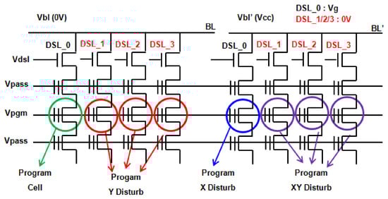 - Seo, J.Y.; Kim, Y.; Park, B.G. New program inhibition scheme for high boosting efficiency in three-dimensional NAND array. Jpn. J. Appl. Phys. 2014, 53, 070304-1–070304-3. [Google Scholar] [CrossRef]