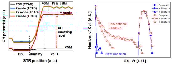 - Kim, Y.; Kang, M. Down-coupling phenomenon of floating channel in 3D NAND Flash memory. IEEE Electron Device Lett. 2016, 37, 1566–1569. [Google Scholar] [CrossRef]