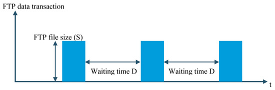 The 3GPP Model [33] defines FTP bursty traffic according to three parameters: file size S, reading time D and the number of devices i, as shown in Figure 6. The device data rate will be: