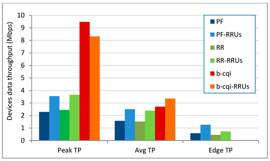Figure 10. Peak/avg/Edge TP with/out RRUs.