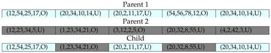 The crossover utilized is a uniform order method with a probability of 0.5 for taking a room from each of the parents. See Figure 5 for an example.