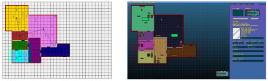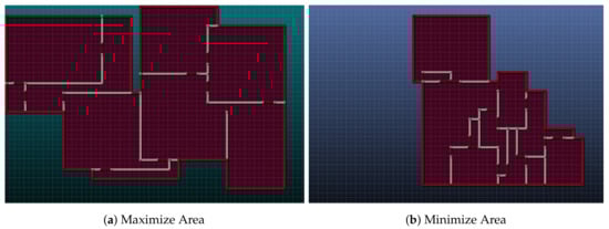 There have also been a number of PCG generations for the design of the interiors of buildings, primarily for architectural design problems such as those in [,,]. However, their evaluations are based on optimizations of floor plans for realistic buildings and look to architectural requirements as their constraints. These methods primarily assume the external structures are fixed and are akin to layout and packing problems which have additional restrictions on the flow between the named areas, or restrictions based on use of the rooms, e.g., placing bathroom beside the master bedroom.