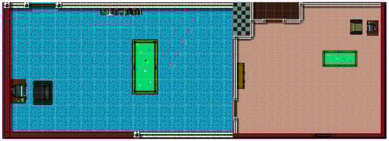 The objects within these rooms were limited to placement of a television, a bookshelf, and a billiards table into the room, to create something narratively described as a rec-room. Figure 9 displays an example output. However, the definition of these assets is rather general, and hence, themes for the rooms can be implemented.