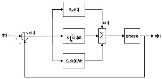 The PID control logic is widely used in controlling industrial processes. Due to the simplicity and flexibility of these controllers, control engineers are using more of them in industrial processes and systems. A PID controller has proportional, integral, and derivative terms, and its transfer function can be represented as Equation (4),