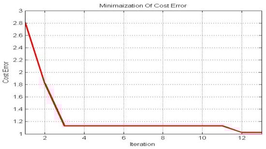 As we can see in Figure 11, the objective function was the sum of the squares of the error. The objective function had some defects that, consequently caused the over mutation in the transient response of the system. To solve this problem, the objective function, in terms of the sum of the squares of the error plus the weight function of the over mutation, was chosen as Equation (8).
