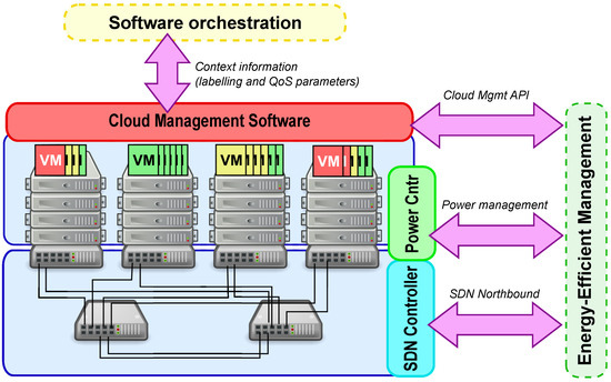 15]. The target is to design a framework that is agnostic of any specific orchestration model and consolidation algorithm. In this respect, it is conceived to extend existing management software by allowing better control on network traffic and power management.
