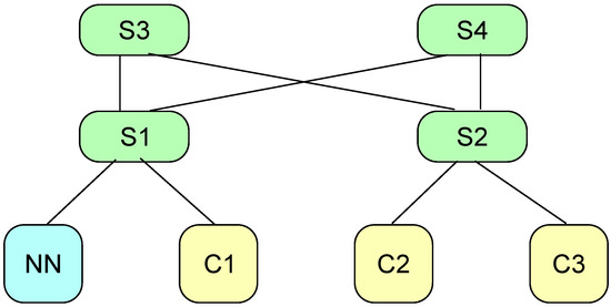 Figure 2. It is a small testbed, but it is rather representative of edge installations, which are not expected to have the same size as modern data centers. It is composed of the hardware and virtual components shown in