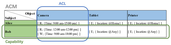 - Anggorojati, B.; Mahalle, P.N.; Prasad, N.R.; Prasad, R. Capability-based access control delegation model on the federated IoT network. In Proceedings of the 2012 15th International Symposium on Wireless Personal Multimedia Communications (WPMC), Taipei, Taiwan, 24–27 September 2012; pp. 604–608. [Google Scholar]
