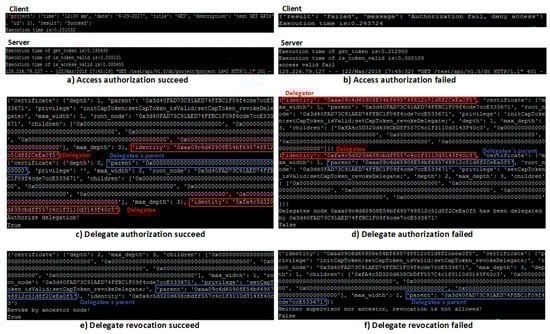 - Delegation Authorization: After receiving the verification result from the DAC, the delegator is capable of assigning delegable permissions to trusted delegatees given pre-defined delegation policies. In our proposal, the federated delegation mechanism is implemented by modifying the delegation certificate, , to assign the delegated permissions or to change the delegation relationship. As the smart contract has received an updated DC transaction from the delegator, it checks the delegator’s to validate the delegation right. If the delegation status can match the relationship, the delegator can delegate a subset of his/her delegated permissions to the delegatee entity by modifying delegatee’s and appending the delegatee’s address to the delegator’s child node set, , to set up the delegation relationship. Otherwise, the capability delegation request is rejected.