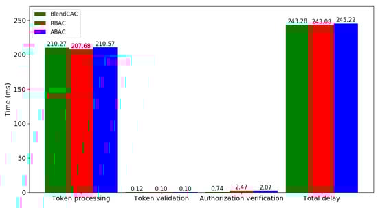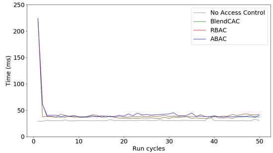 - A comprehensive experimental study is conducted that compares the proposed scheme with the well-known RBAC and ABAC models. The experimental results validate the feasibility of the BlendCAC approach in IoT environments without introducing significant overhead.