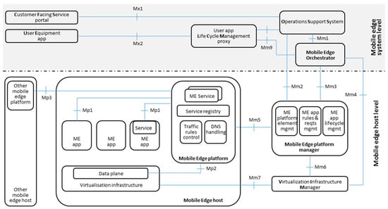 8. ETSI GS MEC 003; Mobile Edge Computing (MEC); Framework and Reference Architecture. Available online: https://www.etsi.org/deliver/etsi_gs/MEC/001_099/003/01.01.01_60/gs_MEC003v010101p.pdf (accessed on 23 October 2018).