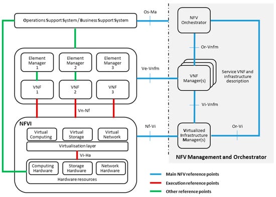 35. ETSI GS NFV 002 v1.1.1 002; Network Functions Virtualisation (NFV); Architectural Framework. Available online: https://www.etsi.org/deliver/etsi_gs/nfv/001_099/002/01.01.01_60/gs_nfv002v010101p.pdf (accessed on 23 October 2018).