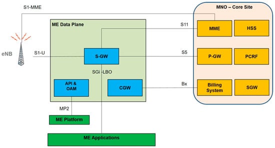 Additionally, ETSI MEC publishes informative white papers. In particular, Reference [27] describes several different approaches to deploying an ME system in a 4G mobile network, to offload “over the top” ME apps from the cumbersome task of dealing with the tunneling protocols used in mobile networks.