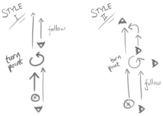 Lastly, Figure 14 is the storyboard for Scene 5. This last scene is approximately 1 min—the longest as compared to other scenes. Style 1 is based on Quentin Tarantino, while the other style is based on some generic cinematography rules.