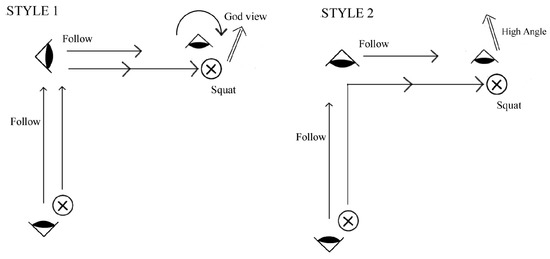Same scene and action but different director’s style: (a) Style 1; and (b) Style 2.