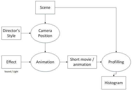 Before we develop an animation or movie clip, we can add some effects—such as transition, sound, and lighting. Then, we develop an animation based on the path of the storyboard. The output of this process is an animation. For every frame in the animation, we extract some values of coordinates and we add these values to our proposed system for profiling the director style. The profiling method we propose is fuzzy logic approach. The outputs of this system are area graph and histogram. Using the histogram, we then decide the director’s style.