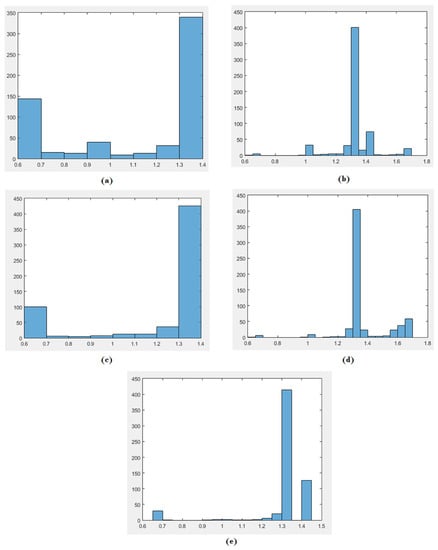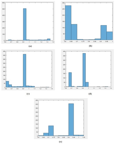 Histogram Diagram for Style 1 (a) Scene 1; (b) Scene 2; (c) Scene 3; (d) Scene 4; and (e) Scene 5.