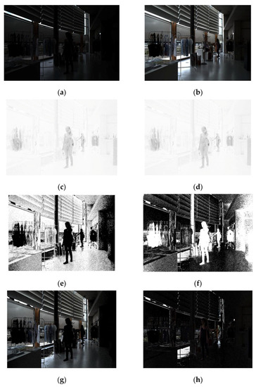 To address the issue of object movement, researchers have focused on identifying and removing moving objects from multiple exposures. In this regard, Khan et al. [8] proposed the removal of moving objects from HDR images iteratively. This was done by estimating the probability that each pixel is a background pixel—i.e., a static region—and separating it from non-static pixels. Granados et al. [9] proposed the minimization of an energy function comprising data, smoothness and hard constraint terms using graph cuts. Silk et al. [10] proposed the estimation of an initial motion mask using the absolute difference between two exposures. The motion mask was further refined by over-segmenting the super-pixels and then categorizing them into static or moving regions and assigning them less or more weight during HDR generation, respectively. Zhang et al. proposed an HDR generation method utilizing gradient domain-based quality measures [11]. They proposed using visibility and consistency scores by assigning higher visibility score to pixels with larger gradient magnitudes and a higher consistency score if corresponding pixels had the same gradient direction.