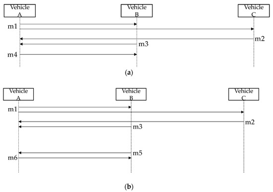 Message sequence examples. (a) Vehicle A receives consent and yielding occurs without a problem; (b) Although Vehicle A has received consent, yielding is cancelled due to overtime.