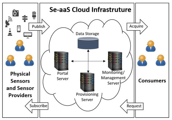 In IoT Se-aaS business models, the general idea is to virtualize sensing services provided by devices. A virtual sensor ends up being responsible for passing user’s specifications to device(s) and for processing of the sensed data before delivering it to users. In [23,24], the physical resources are abstracted, virtualized, and presented as a service to the end users. This way, the access and interaction with physical Things becomes uniform and in compliance with IoT/WoT goals. Specific platforms providing efficient sharing mechanisms for data (among multiple applications) have been proposed in [4,25,26]. In [4], the extra challenge is multitenancy considering both sensor providers and consumers, and on-demand big data sensing service. In [25], the focus is on how to ensure an ecosystem that is interoperable at multiple layers, for the Fog and Edge Computing paradigms to be explored. Such paradigms are suitable when latency, bandwidth utilization and energy consumption need to be reduced, but, for high-demanding processing tasks and integration of data from multiple sources, the use of the cloud is inevitable [27].