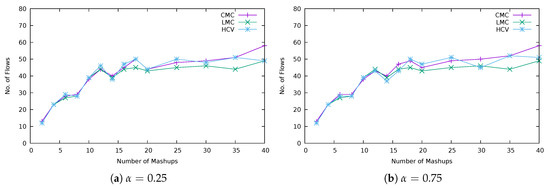 Note that, if mashups were outside the cloud, then more flows, between application components and the cloud in this case, would exist. The number of flows would be (see Figure 5). These values are not shown in order not to disturb the visualization of results from strategies. Flows would also have higher transfer delays, as these are not confined to internal transfers inside the cloud.