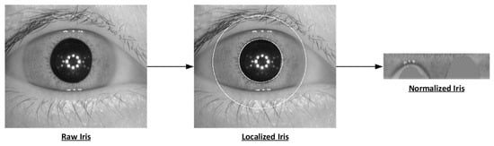 - Data Preprocessing: The area of interest inside the image taken from the eye, i.e., the iris, needs to be extracted. In this work circular Hough transformation is used to localize the iris and extract it. The segmented iris is then normalized. Fingerprint images remain unchanged.