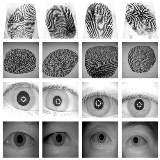 Biometric data presents several benefits over classical data (i.e., password, key, card, and so forth) for provision of security. In order to attack a biometric recognition system, the easiest way is to deliver a fake biometric data. This attack is called spoofing and is of great importance to the research community. This attack can be used to find the vulnerabilities against a recognition system of the iris, the fingerprint, the face, and the signature. The main strength of this attack is its defensive capability against digital protection mechanisms, including encryption, digital signature, or watermarking. A strong and protected biometric recognition system can distinguish authentic fingerprint or iris from fake ones. A number of true and fake biometric data (i.e., fingerprint and iris) employed in this work are shown in Figure 5.
