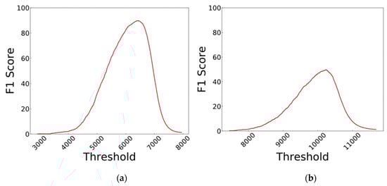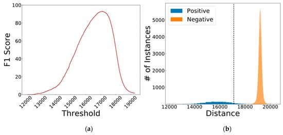 In order to find an optimum threshold, this value is swept across the minimum to the maximum range of the distances and the one with the highest F1 score is chosen. This is reflected in Figure 10.