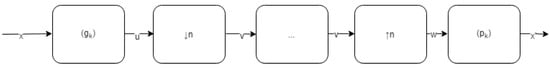 Please note that from here on, the terms interpolation and decimation are used interchangeably with those of upsampling and downsampling, respectively. We define in Figure 1 the schema described by Youssef in [] for the operation of downsampling/upsampling for a given 1D signal input: