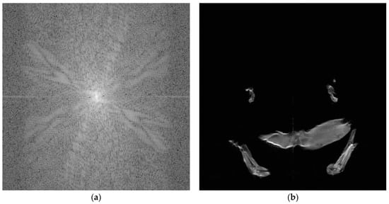 Example of one image exhibiting good interpolation results (MSSIM = 0.99) []. (a) representation in the frequency domain; (b) representation in the spatial domain.