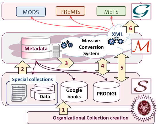 Figure 1 shows the MassConv steps as yellow numbered arrows, witnessing how some DigLib knowledge is “encapsulated” into the system. We now generically describe the MassConv workflow steps, as follows: