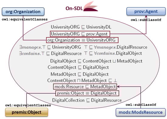 - UniversityORG ⊑ UniversityDL: ORGs belonging to Sapienza can be represented in the SDL.