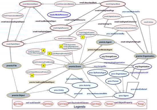 - PREMIS ontology (PREMIS-OWL) [,,] models the knowledge domain of digital preservation metadata, and develops around four main classes:premis:Object, premis:Event, premis:Agent and premis:Rights.