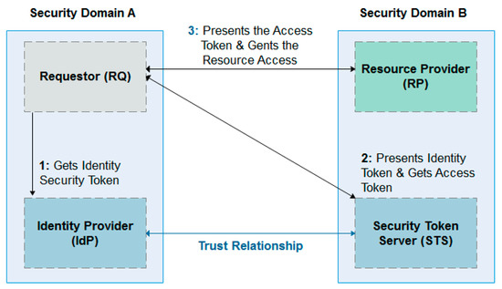The WS-federation is developed by a group of companies. It is a part of the largest web service security framework [31]. The main goal of this standard is to define guidelines and mechanisms to manage security aspects and trust relationships across web services and organizations boundaries. The WS-federation model includes three core elements: the requestor (RQ), which is used to require access to web services; the identity provider (IdP) or security token server (STS), which handles the authentication process with the transmitting of security tokens with relevant attributes; and the resource provider (RP), which includes one or more web services to provide resources required by the RQ [32].