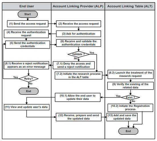 Web-based workflow of registration and accounts linking process.