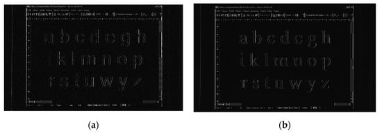 One type of SCA has the characteristics of a high-pass filter, which is an important property from the viewpoint of protecting information against electromagnetic infiltration processes. In the output of an SCA, only vertical and diagonal edges (rising edges and falling edges of electrical video signal pulses) are visible in reconstructed images. There are no visible horizontal edges. In the case of the analog VGA standard, reconstructed characters of fonts are marked by their vertical and diagonal edges. For the digital DVI (HDMI) standard, because of the nature of the transition-minimized differential signaling (TMDS) coding algorithm, character fills appear. This is related to the bit characters (0 and 1) of the electrical signal, and may result in the loss of processed information (Figure 2) [,].