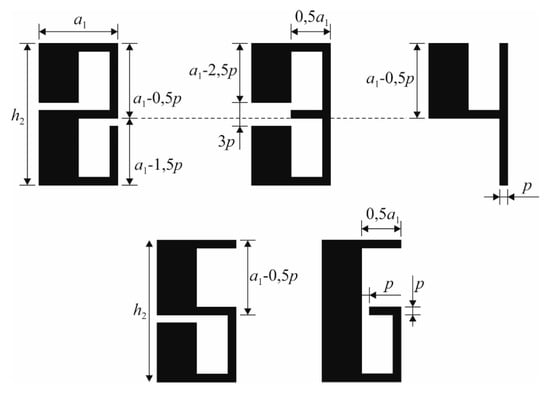 Since the characters of this font do not have decorative elements, it means that the characters of the font are similar to each other, with high between-character correlation coefficient values. Examples of the lowercase letters and digits are shown in Figure 8. Similar to the Symmetrical Safe font, the construction of the characters of the Safe Asymmetrical font must meet appropriate criteria (Figure 9 and Figure 10) to ensure protection against the electromagnetic eavesdropping process. These criteria concern the proportions of the line widths, the clearance, and the position of the middle horizontal lines. The middle horizontal lines appear in the letters “e”, “s”, and “z” (Figure 11).
