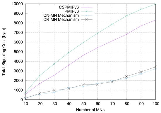Performance of signalling cost vs. the number of MNs (CR-MN mechanism).