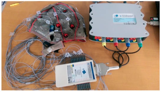 The G.tec equipment consists of g.GAMMAsys with 16 simultaneously sampled 24 bit bio-signal channels, including a driver box and a high-performance bio-signal amplifier and acquisition/processing system, called g.USBamp-RESEARCH. The latter is considered as a standard for many different fields of research, such as in BCIs.