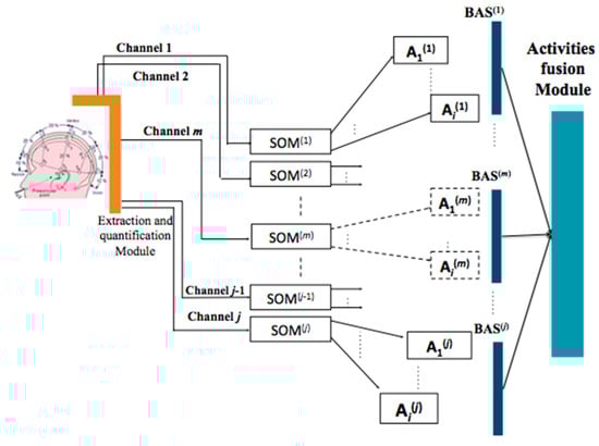 As illustrated in Figure 6, the proposed classifier consists of a set of 16 SOM networks, with each one associated with a given channel. Each SOM network generates its own map containing whole activities that are supposed to be classified.