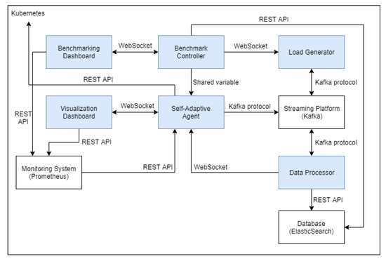 The self-adaptive agent will react to the changes in the environment by executing MAPE-K (monitor-analyze-plan-execute with shared knowledge) loop [21] once in a fixed interval of time. During the monitoring phase, the agent fetches the environment information from Kafka, Kubernetes, and the data processor. Next, in the analysis phase, it calculates the desired number of data processor replicas according to the equations introduced above. The agent will apply scaling constraints in the planning phase; the scaling constraint that is being used is to scale in only one instance at a time if the desired number of instances is less than the current number of instances for 15 seconds. For the execute phase, the agent will create or delete the data processor’s Kubernetes pods according to the planning phase demands.