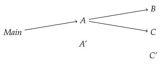- Allier, S.; Vaucher, S.; Dufour, B.; Sahraoui, H.A. Deriving Coupling Metrics from Call Graphs. In Proceedings of the Tenth IEEE International Working Conference on Source Code Analysis and Manipulation (SCAM 2010), Timisoara, Romania, 12–13 September 2010; pp. 43–52. [Google Scholar] [CrossRef]