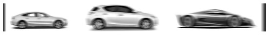 Let us divide the original piecewise-uniform smeared image in Figure 6 into three parts, for example, g1(:,22:344); g2(:,400:800), g3(:,854:1293). To perform such a division is not difficult. Figure 8a–c present the divided parts g1, g2, g3 of the image shown in Figure 6.